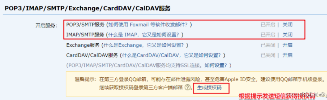 【密码】可登录QQ邮箱页面,点击【设置】-->【账户】中的【生成授权码】,通过短信获取授权码