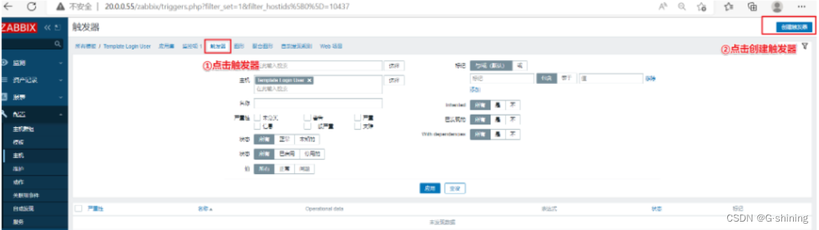 点击上方菜单栏【触发器】,点击【创建触发器】
