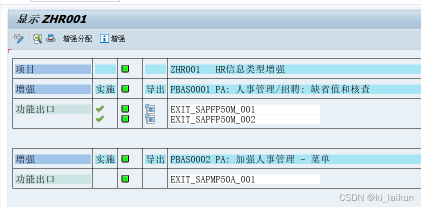 PA30 PA40增强 CMOD 可以做输入检查和校验的增强,回车或者保存都会触发 EXIT_SAPFP50M_002 INFOTYPES : 0185, 0530, 0532. DATA: lw_0185 TYPE p0185, lw_0105 TYPE p0105.* lw_9509 TYPE p9509. DATA: lw_p0008 TYPE p0008, lw_p0007 TYPE p0007, lt_p0007 TYPE TABLE OF pa000..
