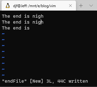 举个例子,如下所示文本,假设光标停留在最后一个h上,而我们想要删除的单词是nigh: