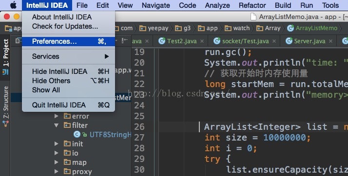 1)选择idea配置面板,我以mac为例,windows是打开settings