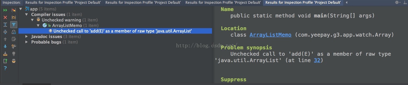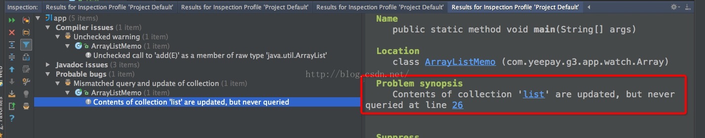 由于我只是测试arraylist的扩容问题,所以并未对list的结果有任何应用,所以提示bug如下