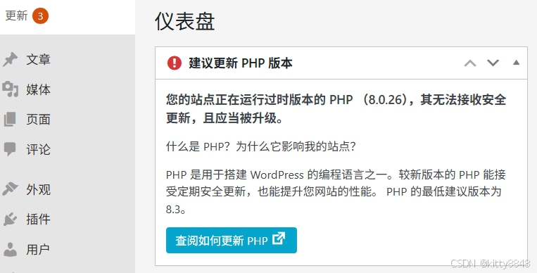 登陆wordpress后台时出现:建议更新 PHP 版本