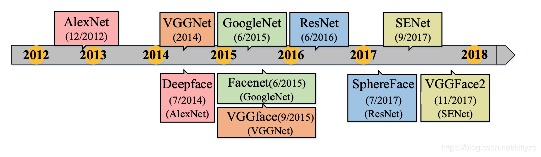 人脸识别的DCNNs有两个主要的研究方向:分类学习(softmax loss)、度量学习(triplet loss等)。