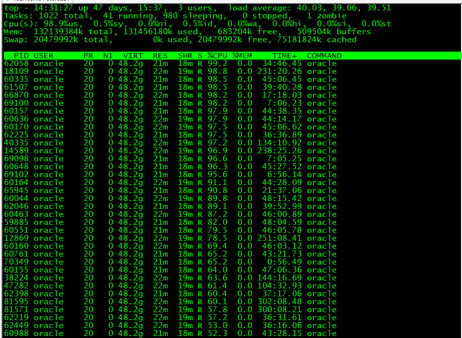 中午的时候,我们生产上的某个数据库,cpu一直居高不下