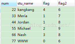 select * from wTest where flag=4,结果: