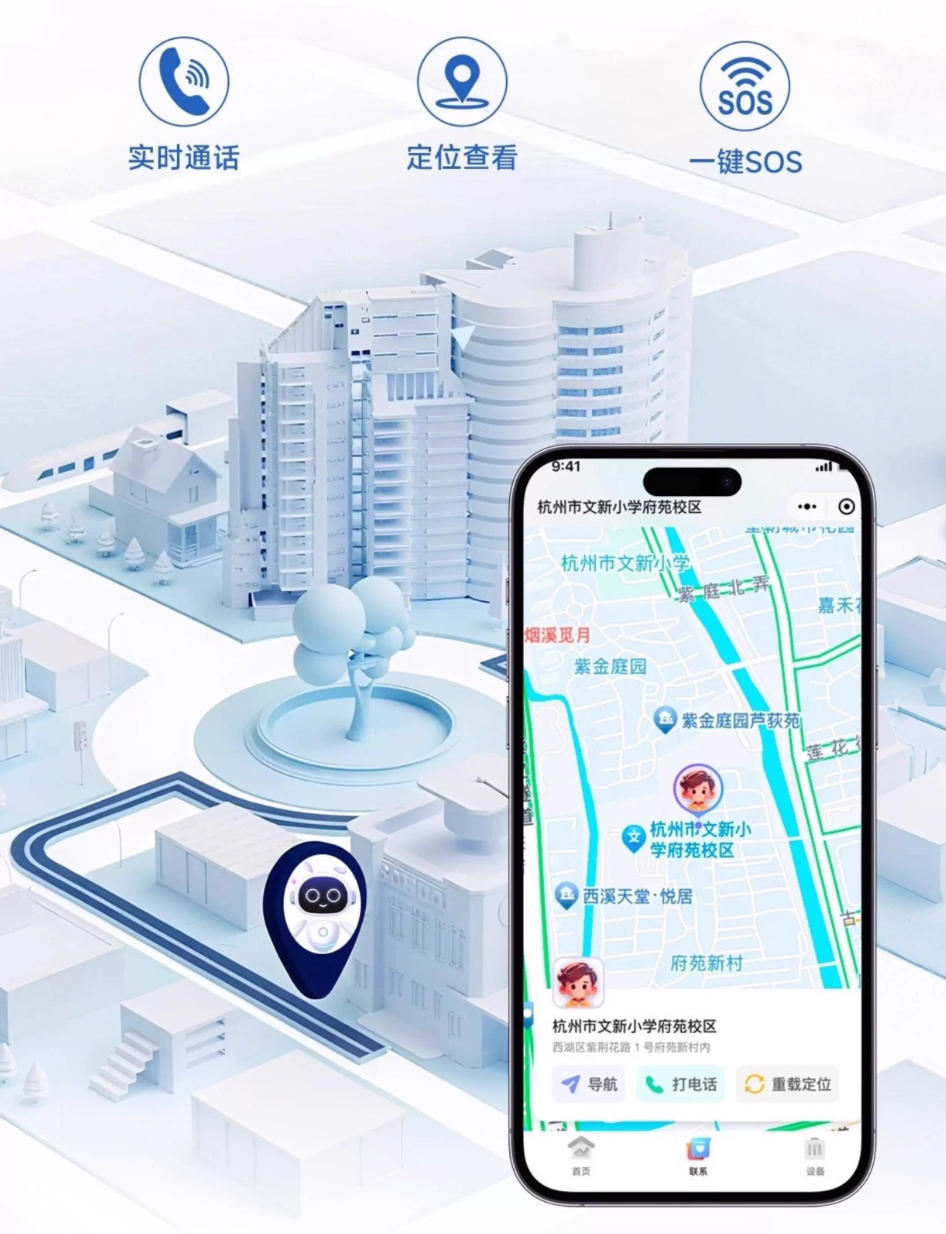 千知精灵支持4G通讯与Wi-Fi联网,家长与孩子可随时通话,紧急情况一键SOS,同时产品内置GPS,家长可在手机端实时查看孩子当前位置。