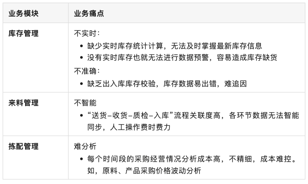 随着全球供应链的复杂化和扩展,生产制造加工类企业需要更有效的方法来管理物流和库存,以提高仓库操作的效率、精确性和可视性。传统仓储管理有以下痛点: