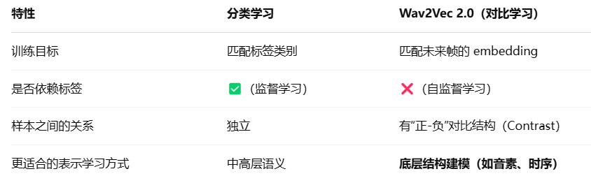 分类的学习还是需要标签,对于一些语音识别,可以使用对比学习