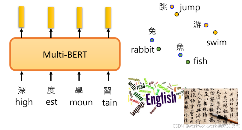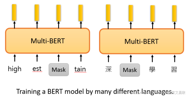 Multilingual BERT是指训练时用很多种不同语言做填空
