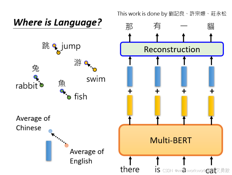 为什么能做到呢?可能是不同语言的同义词embedding在空间中位置接近。李老师提到,