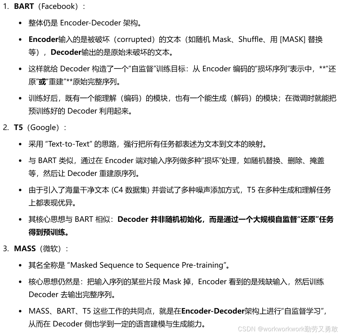 BART、T5、MASS 等“预训练 Seq2Seq”模型
