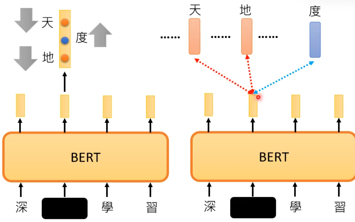 当我们训练BERT时,我们给它w1、w2、w3和w4,我们覆盖w2,并告诉它预测w2,而它就是从上下文中提取信息来预测w2。所以这个向量是其上下文信息的精华,可以用来预测w2是什么。