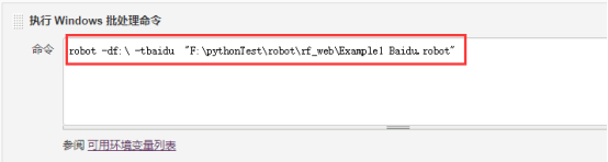 命令:robot -df:\ -tbaidu "F:\pythonTest\robot\rf_web\Example1 Baidu.robot"