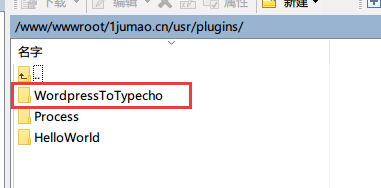 Wordpress to Typecho插件解压后的文件夹上传到typecho的插件目录下,具体路径是www/wwwroot/你的网站/usr/plugins/