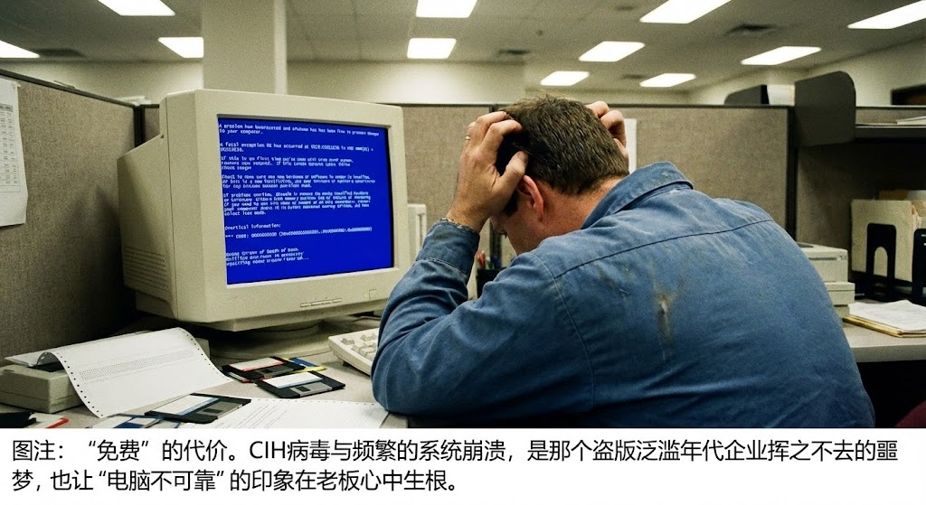 这种 “破解即正义,免费即本事” 的价值观,在1995年的中国企业里根深蒂固。它让技术人员产生了一种错觉:软件本身是没有成本的,只有硬件(电脑、打印机)才值得花钱。