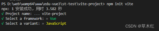 进入要放置项目的文件夹 ,初始化 vite,并创建vite-project 项目文件夹, 并依次选择 如图
