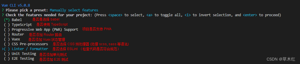 #创建一个名字为 my-project 的文件夹 vue create my-project - 配置 vue-cli