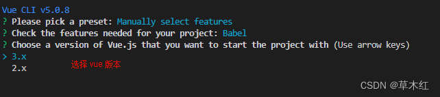 选择 vue 版本,选中 3.x (vue3) 点击回车
