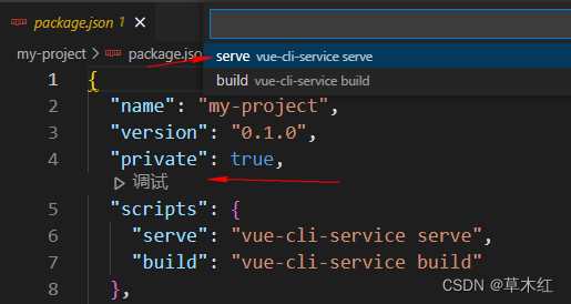npm run servevscode 也可以在 package.json 文件中点击调试 选择 serve