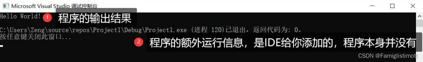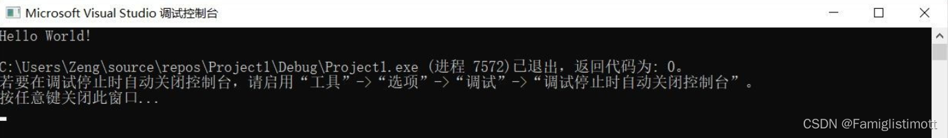 IDE将自动启动一个控制台并执行由该项目生成的程序。