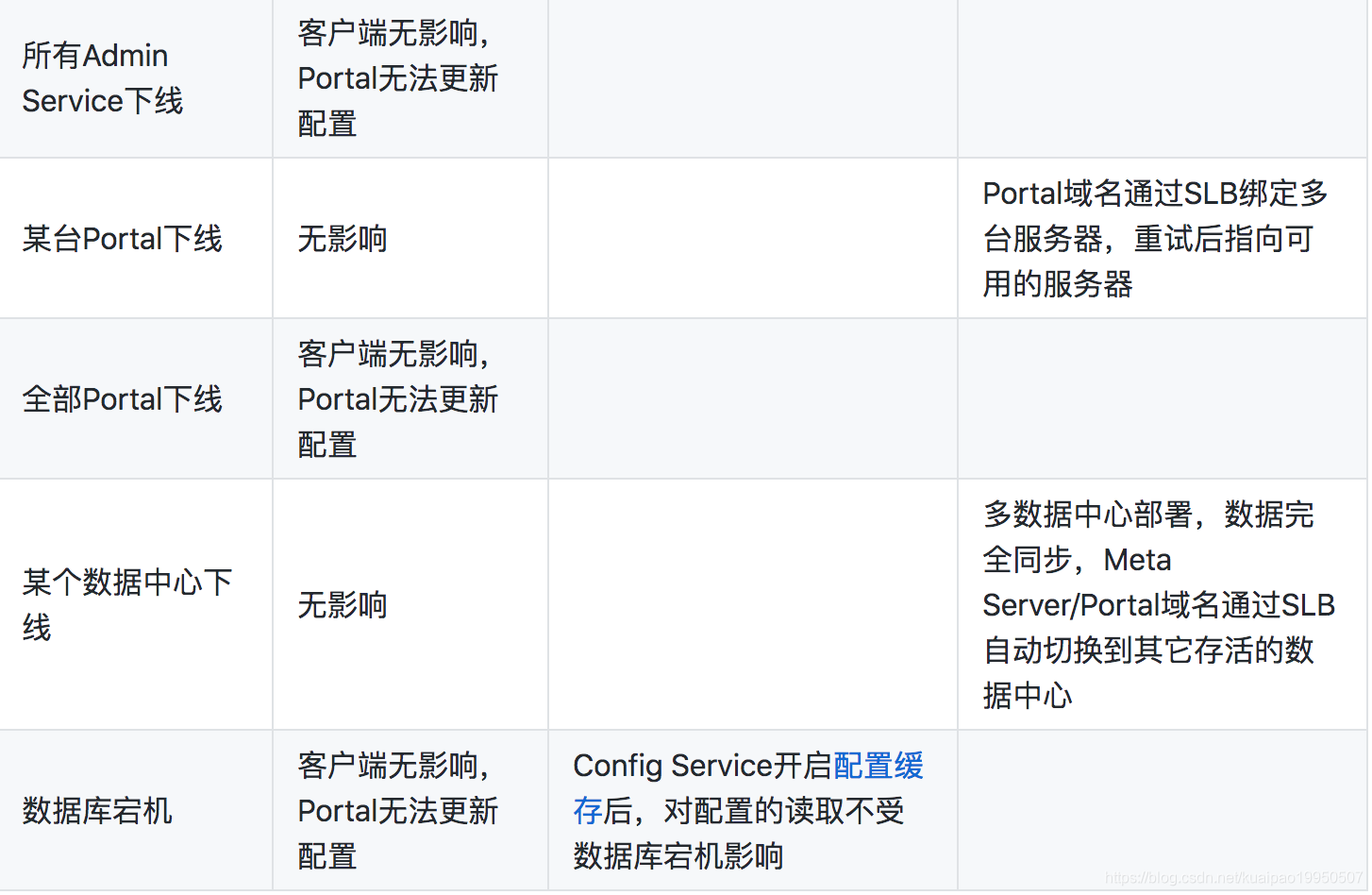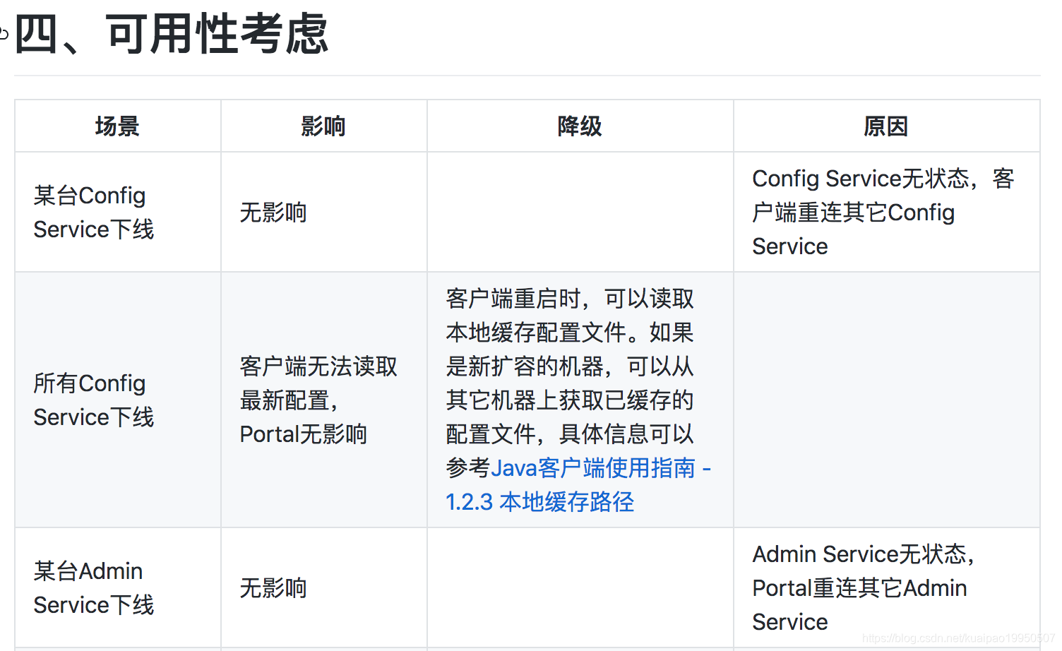 - 配置中心作为基础服务,可用性要求非常高,这就要求Apollo对外部依赖尽可能地少