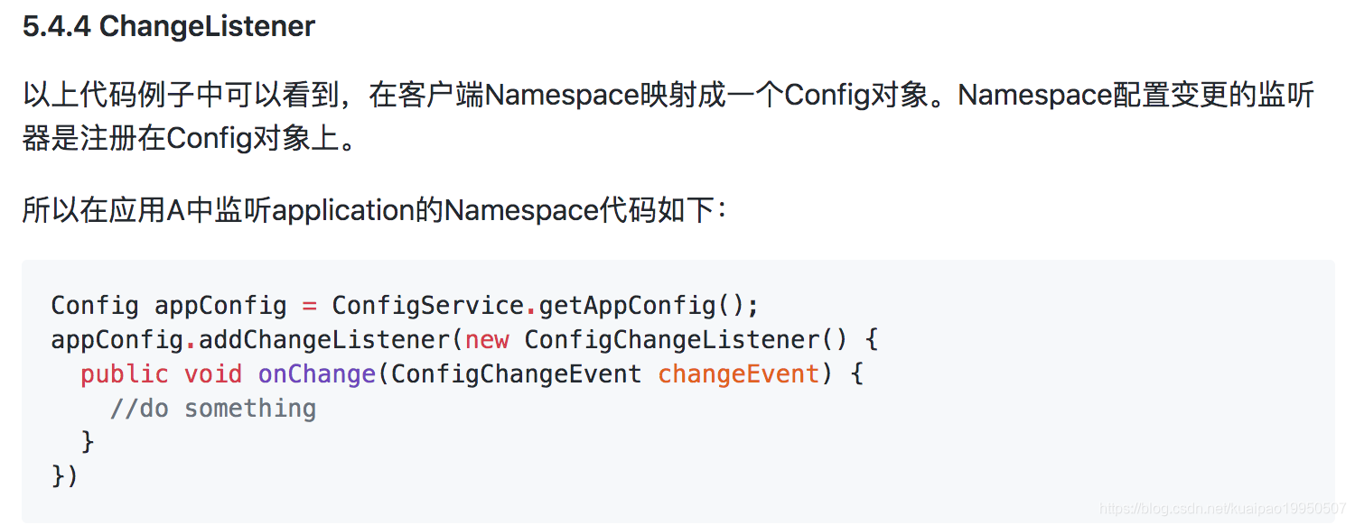 - 客户端和服务端保持了一个长连接,从而能第一时间获得配置更新的推送。(通过Http Long Polling实现)