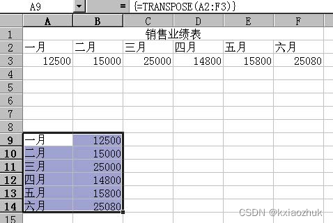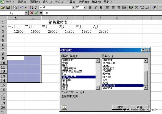 示例,将原来为横向排列的业绩表转置为纵向排列。