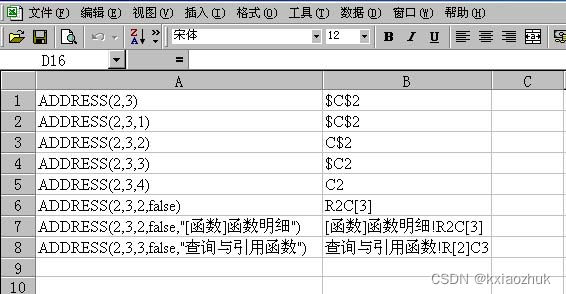 Abs_num 指明返回的引用类型,1代表绝对引用,2代表绝对行号,相对列标,3代表相对行号,绝对列标,4为相对引用。
