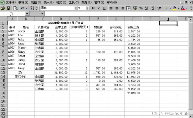 然后,根据工资表创建各个员工的工资条,此工资条为应用Vlookup函数建立。以员工Sandy(编号A001)的工资条创建为例说明。