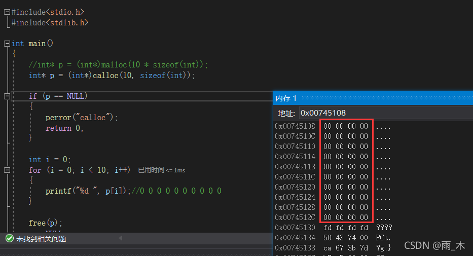 int* p = (int*)calloc(10, sizeof(int));//二者开辟的内存空间大小相同