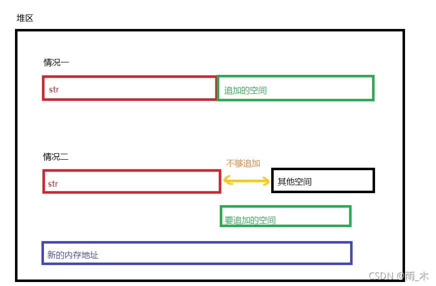 当是情况2 的时候,原有空间之后没有足够多的空间时,扩展的方法是:在堆空间上另找一个合适大小的连续空间来使用。这样函数返回的是一个新的内存地址。