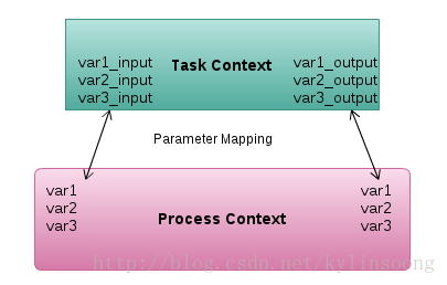 jBPM 6 中 Process Variable 和 Task Variable 以及它们之间的关系如下图所示: