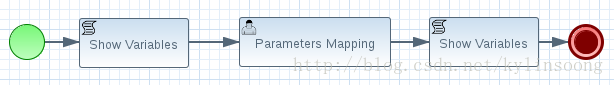 如上,Process Variable位于Process 上下文中,Task Variable 位于Task 上下文,Task Variable 被 Task WorkItem使用,Task 通过Input Mapping获取Process 上下文中的变量,Task 通过Output Mapping将自己的变量传输给Process 上下文中。本文通过一个例子说明这一映射的过程。我们本文使用到的流程如下: