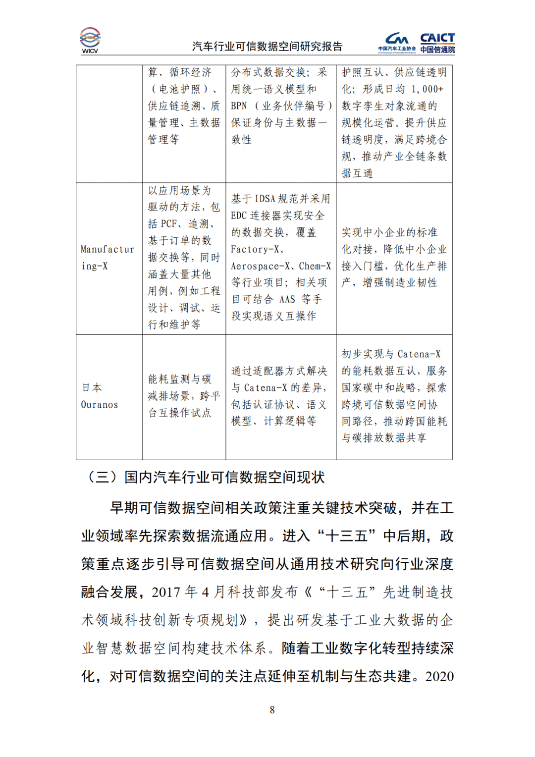 国内方面,国家数据局印发的《可信数据空间发展行动计划(2024-2028年)》明确了汽车行业的重点地位,多地政府也出台配套政策推动试点建设。目前已形成三类典型探索路径:众链科技依托行业协会优势构建全产业链数据流通底座;中国汽研聚焦高价值环节打造数据产品与服务体系;中汽数据则侧重制度、技术与服务三位一体推进。