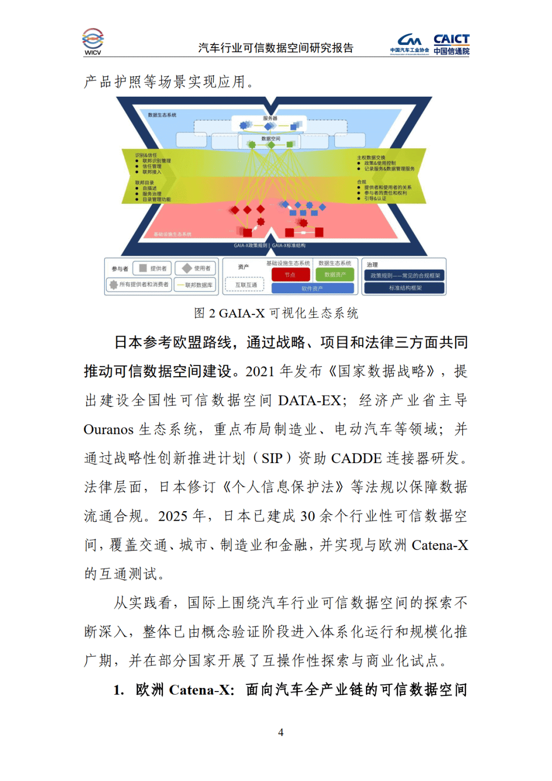 国际上,欧洲通过GAIA-X计划、《欧洲数据战略》等构建了完善的政策与实践体系,Catena-X作为代表性项目,已实现碳足迹核算、电池护照等场景的规模化应用,形成“协会治理-开源研发-商业化运营”的成熟模式。日本则以Ouranos生态系统为核心,聚焦能耗与碳排放数据共享,积极探索与国际平台的互操作机制。