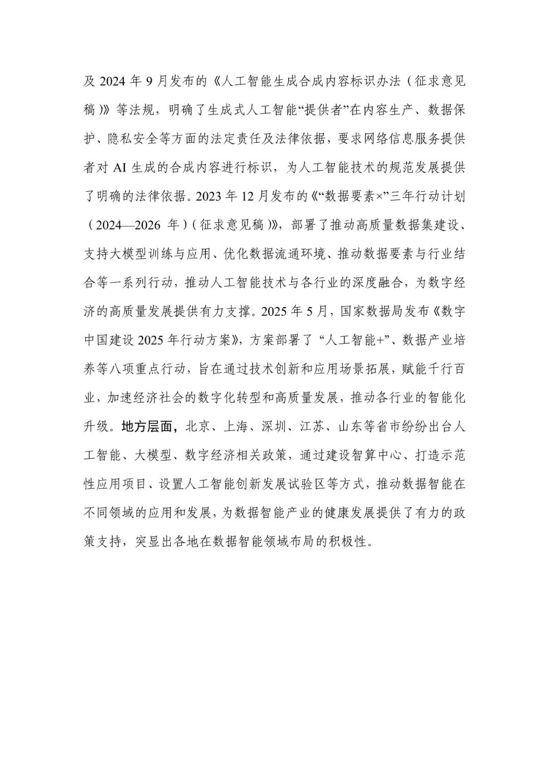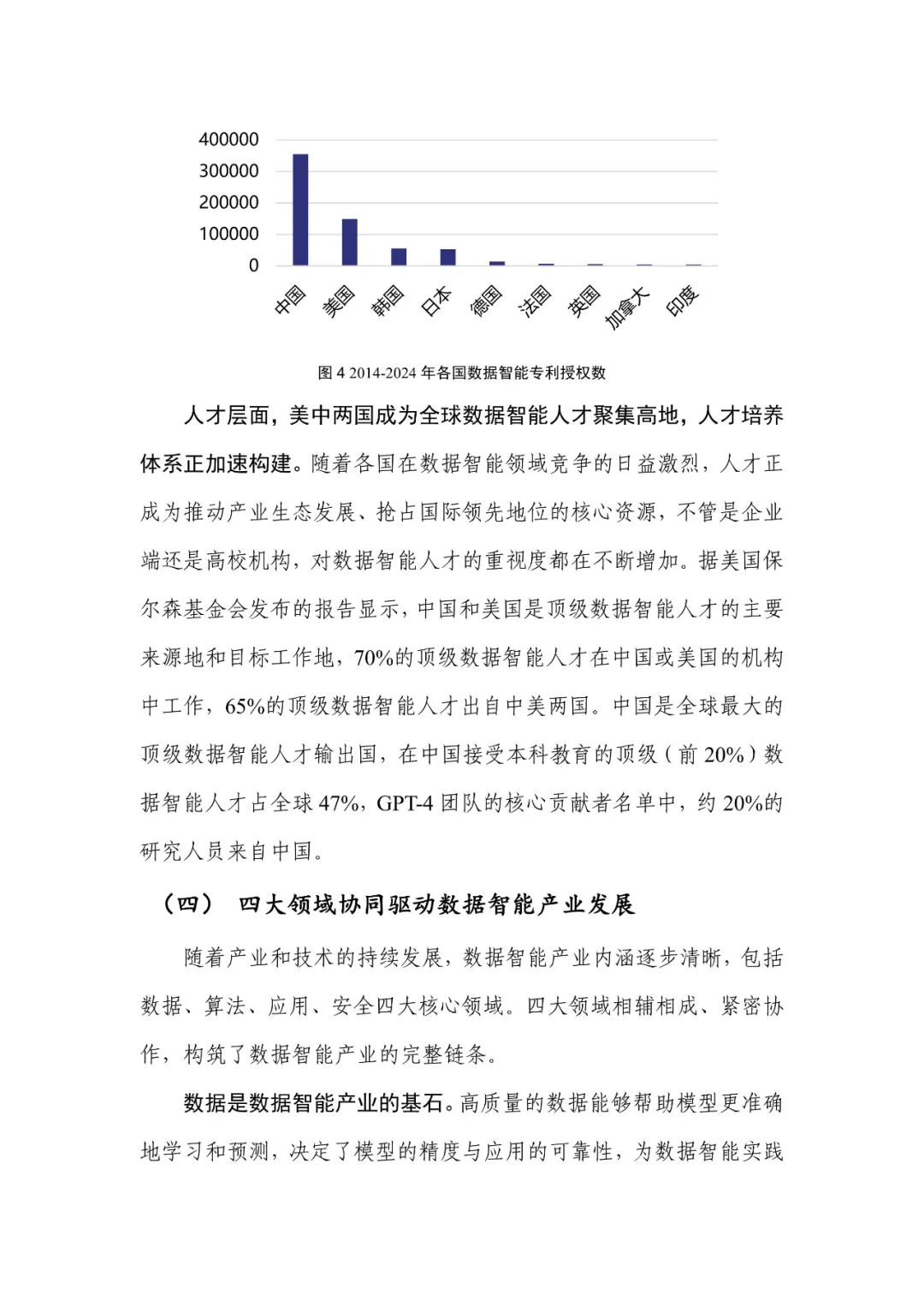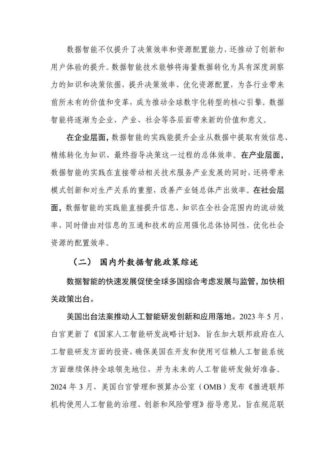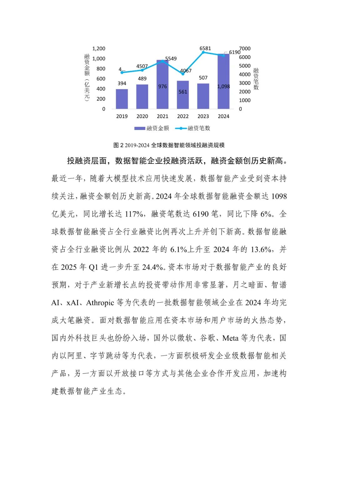 《数据智能研究报告(2025年)》主要更新了三方面内容,一是系统梳理全球主要国家最新数据智能领域政策法规,深入洞察全球数据智能产业发展最新动态;二是围绕数据智能产业规模、企业数量、投融资情况、论文专利、人才培养等维度,深入剖析全球数据智能产业的发展态势以及未来发展趋势;三是从数据、算法、应用、安全四个维度梳理当前数据智能产业发展的最新进展及面临的问题,深入解析未来数据智能产业各个领域的发展趋势。