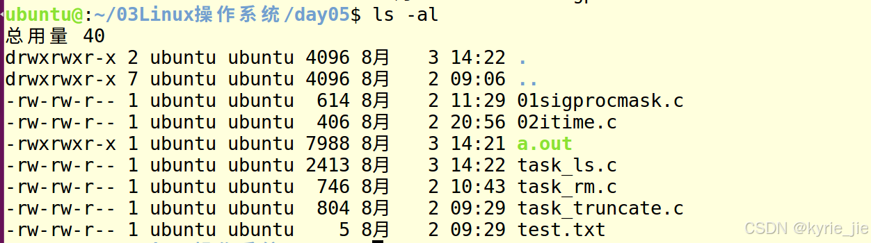 -l:以长格式显示目录下的内容列表。输出的信息从左到右依次包括文件名,文件类型、权限模式、硬连接数、所有者、组、文件大小和文件的最后修改时间等;