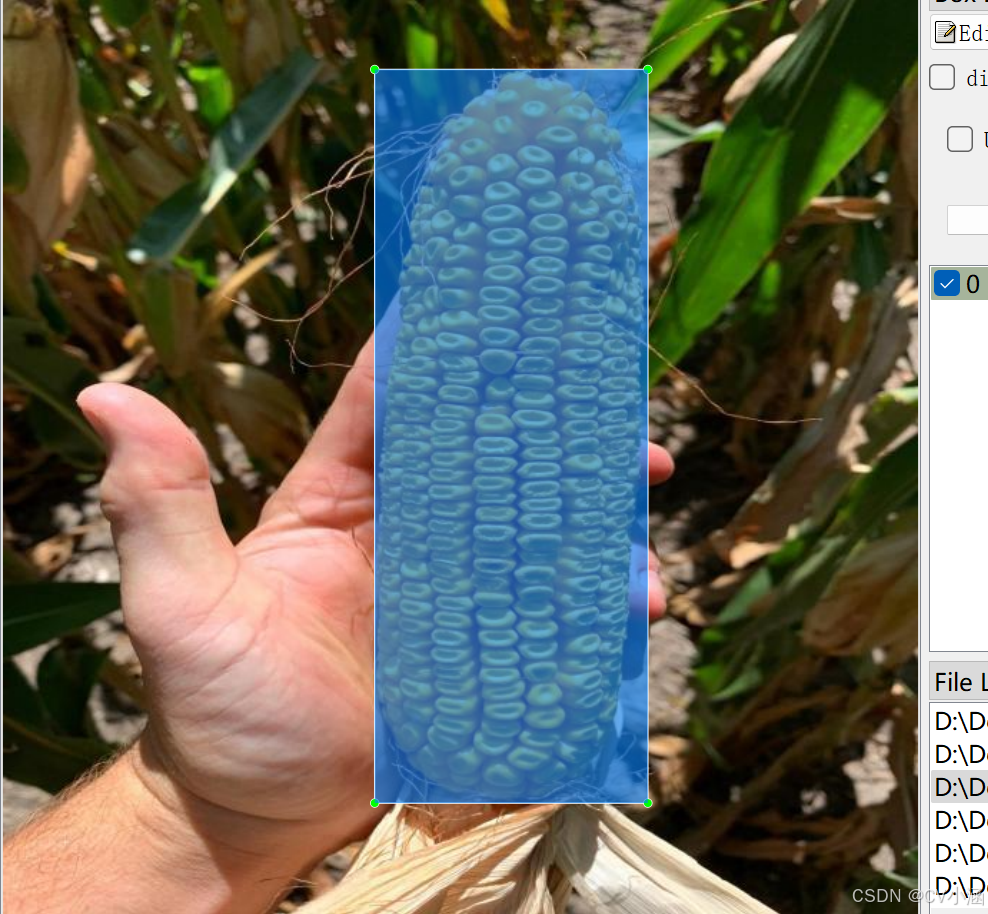 数据集中包含1种分类:names: ['0'],代表玉米。