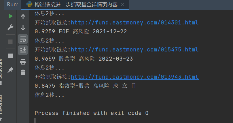 之后构造详情页链接,获取详情页的基金信息,关键代码如下: