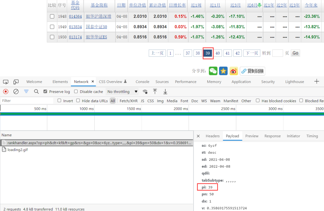 这样就降低了抓取难度了。通过浏览器抓包的方法,可以看到具体的请求参数,而且可以看到请求参数中只有pi在变化,而这个值恰好对应的是页面,直接构造请求参数就可以了。