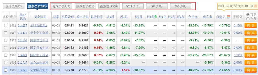 这篇文章主要是以【股票型】的分类做了抓取,其他的类型,我就没做了,欢迎大家尝试,其实逻辑都是一样的,改下参数就可以了。