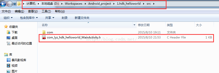 在Android项目的根目录新建JNI目录,将com_lyz_hdk_helloworld_MainActivity.h文件拷贝到jni目录下,然后新建hello.c文件,引入所需要的库,