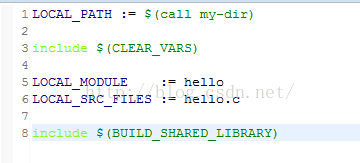 LOCAL_SRC_FILES := hello-jni.c:指定你要编译哪些C的源文件