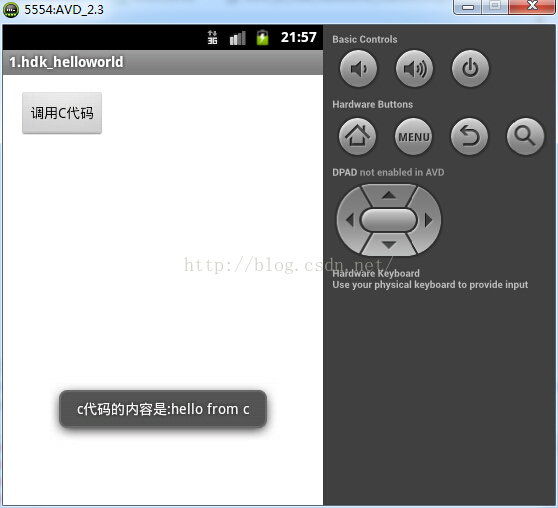 这个小例子实现的功能就是,通过Android中的java代码来调用C代码实现java代码与C代码之间的交互。