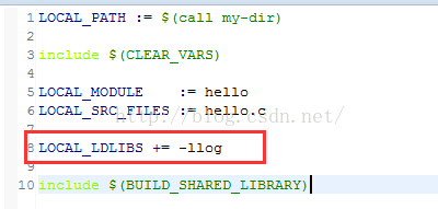 注意:这行代码一定要加载include $(BUILD_SHARED_LIBRARY)之前。