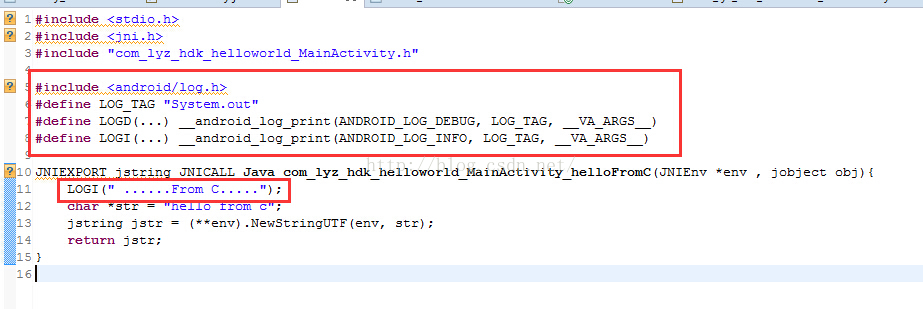 JNIEXPORT jstring JNICALL Java_com_lyz_hdk_helloworld_MainActivity_helloFromC(JNIEnv *env , jobject obj){