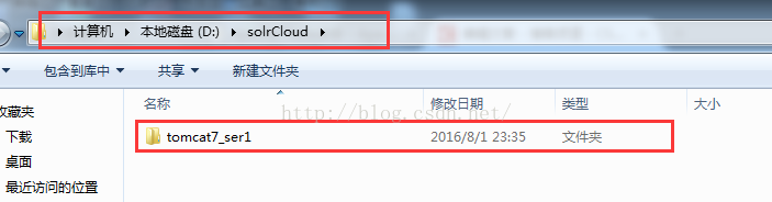 第一步:在D盘根目录下建立solrCloud目录。并把apache-tomcat-7.0.56.zip解压到solrCloud目录下,复制apache-tomcat-7.0.56并重命名为tomcat7_ser1