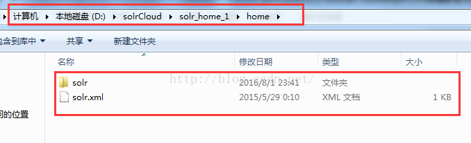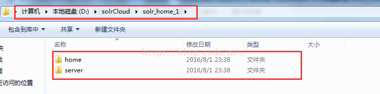 第二步,在solrCloud目录下新建solr_home_1 文件夹如下图,并在目录下,创建 home 和 server 文件夹