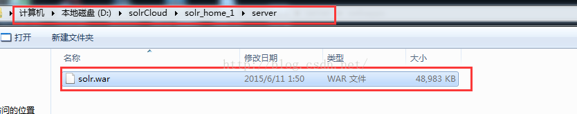 第四步:把solr-5.2.1\server\webapps\solr.war复制到solr_home_1\server目录下。将solr.war解压,解压后将solr.war文件删除,如下图